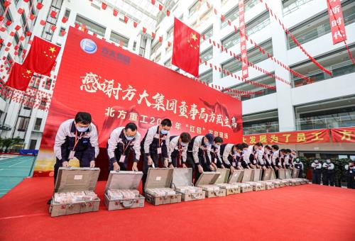 “工作了一輩子,現(xiàn)在老了老了,退休還能領(lǐng)到紅包,太感謝了,感謝方大集團(tuán)、感謝北方重工,我們這些退休的人會(huì)一直關(guān)注企業(yè)的發(fā)展?!币晃?2歲高齡的老人激動(dòng)的說。