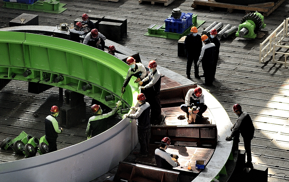 北方重工裝配車間環(huán)冷機(jī)裝配現(xiàn)場。(資料片)