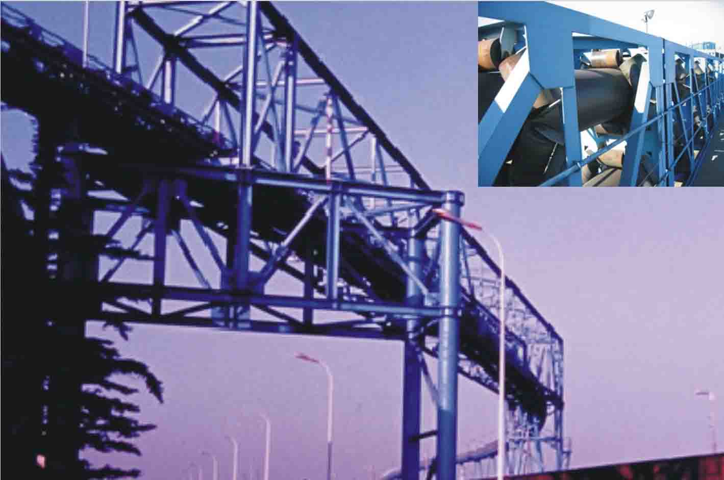 我公司所生產(chǎn)的帶式輸送機,首先是運行可靠,在許多需要連續(xù)運行的重要的生產(chǎn)單位,如發(fā)電廠煤的輸送,鋼鐵廠和水泥廠散狀物料的輸送,以及港口內(nèi)船舶裝卸等均采用帶式輸送機。其特點動力消耗低,使用過程中阻力小,對貨物的磨損和破壞均小,生產(chǎn)效率高。不僅在煤廠、鋼鐵廠和礦廠運用輸送機,還在小型隧道內(nèi)均可以使用,長度短則幾米,長可達10米以上,也可以架設(shè)在地面交通混亂和危險地區(qū)的上空。如在一點或多點受料.也可以向多點或幾個區(qū)段卸料,需要時,還能把各堆不同的物料進行混合。